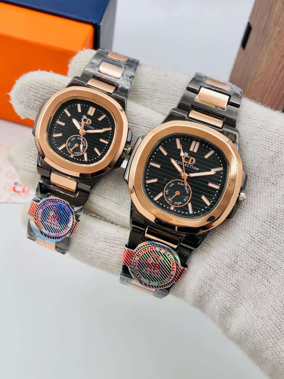 Celebrate timeless style together with this Luxury Couple Watch Set, designed with elegance and durability in mind. Featuring a bold black dial, gold-tone bezel, and stainless steel strap, these watches are perfect for couples who love to match their style.